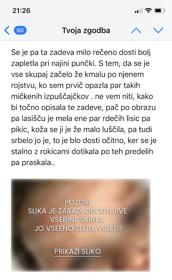 “Vse se je začelo s parimi izpuščajčki na obrazu in pri lasišču …”