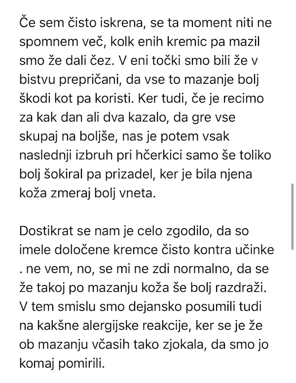 Tako kot se je recimo opekla tale naša mlada mamica, ki je zbrala pogum, da s tabo deli svoje izkušnje bojevanja s kožnimi ekcemi.